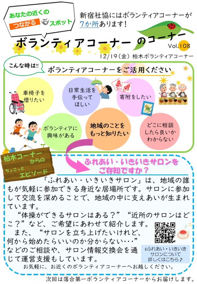 今回は「柏木ボランティアコーナーのコーナー」を紹介します。