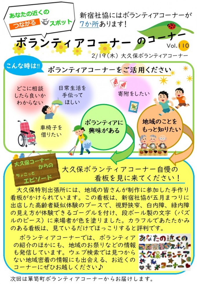 今回は「大久保ボランティアコーナーのコーナー」を紹介します。