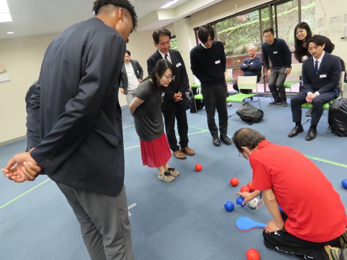 新宿区のスポーツ推進委員の方にボッチャ指導をしていただきました。