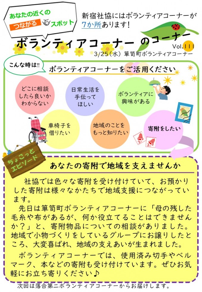 今回は「箪笥町ボランティアコーナーのコーナー」を紹介します。