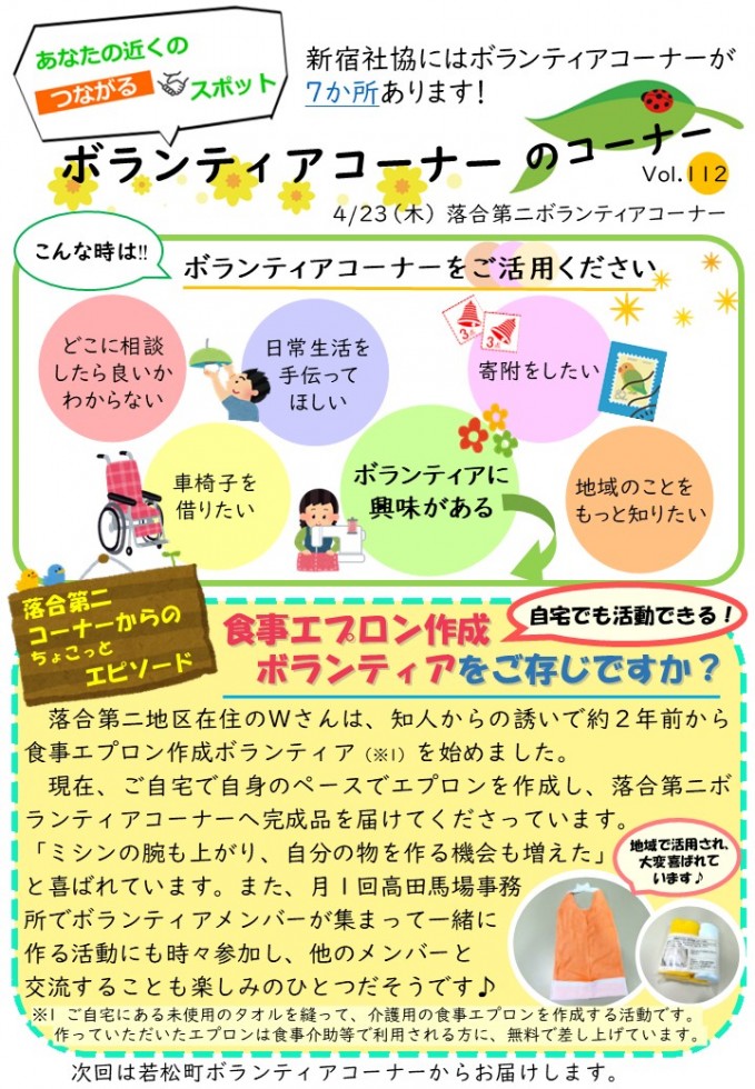 今回は「落合第二ボランティアコーナーのコーナー」を紹介します。