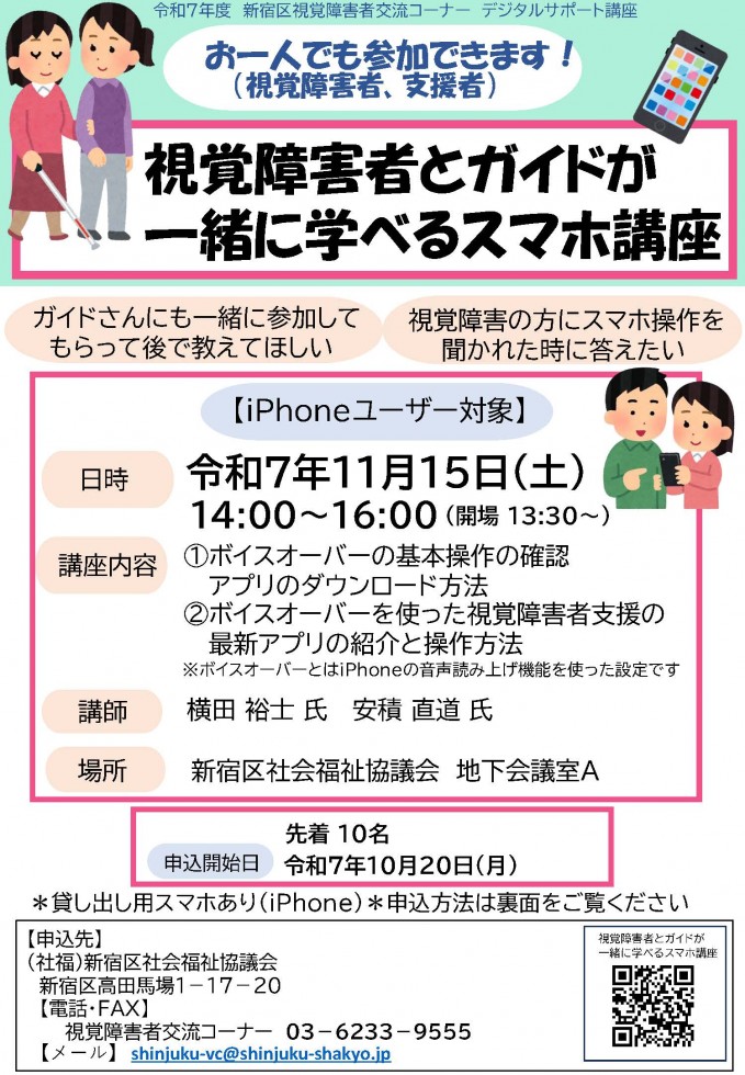 新宿区視覚障害者交流コーナー デジタルサポート講座 「視覚障害者とガイドが一緒に学べるスマホ講座」