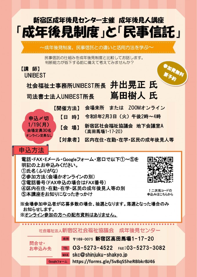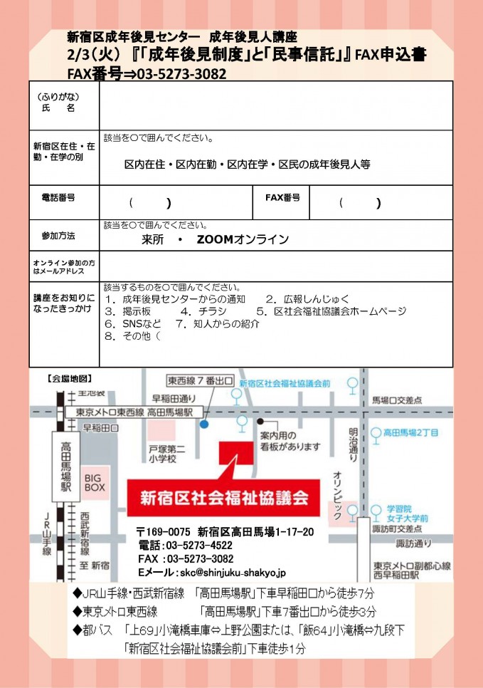 【会 場】 新宿区社会福祉協議会 地下1階会議室(高田馬場1-17-20)