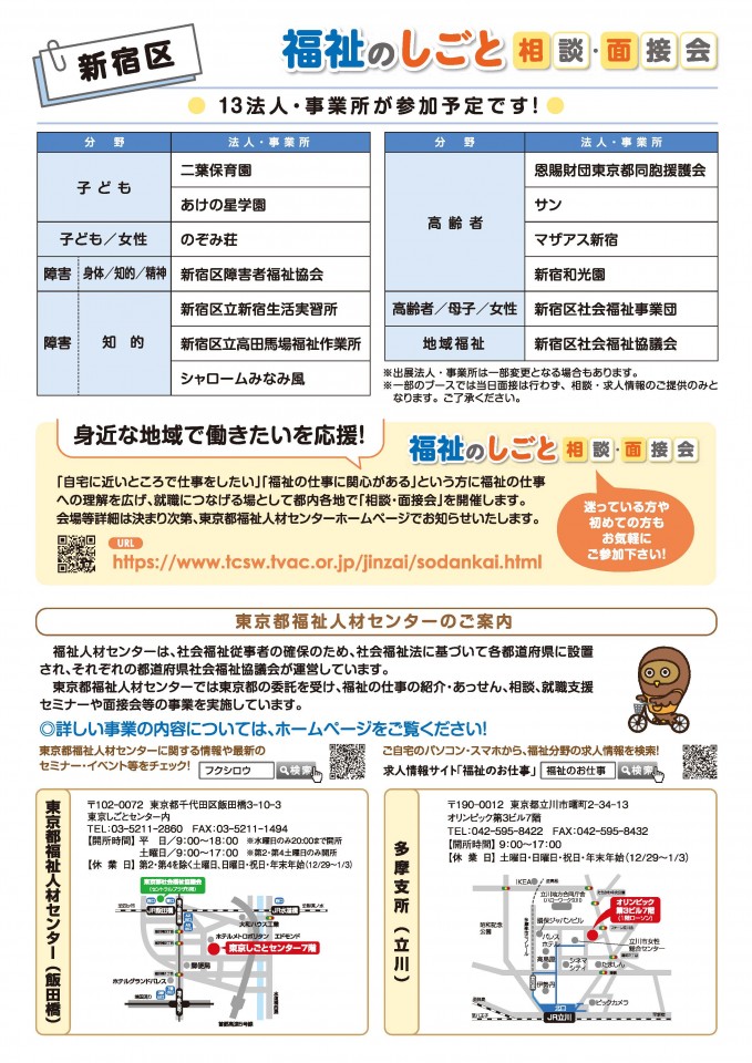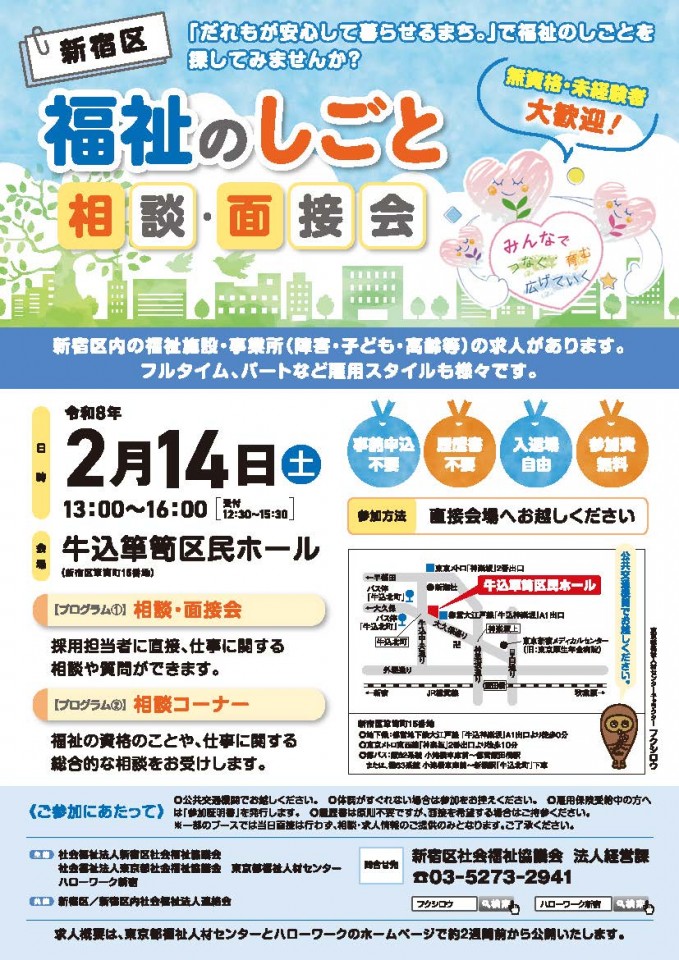 【~福祉のしごとを探してみませんか?~ 2/14(土)新宿区福祉のしごと 相談・面接会】